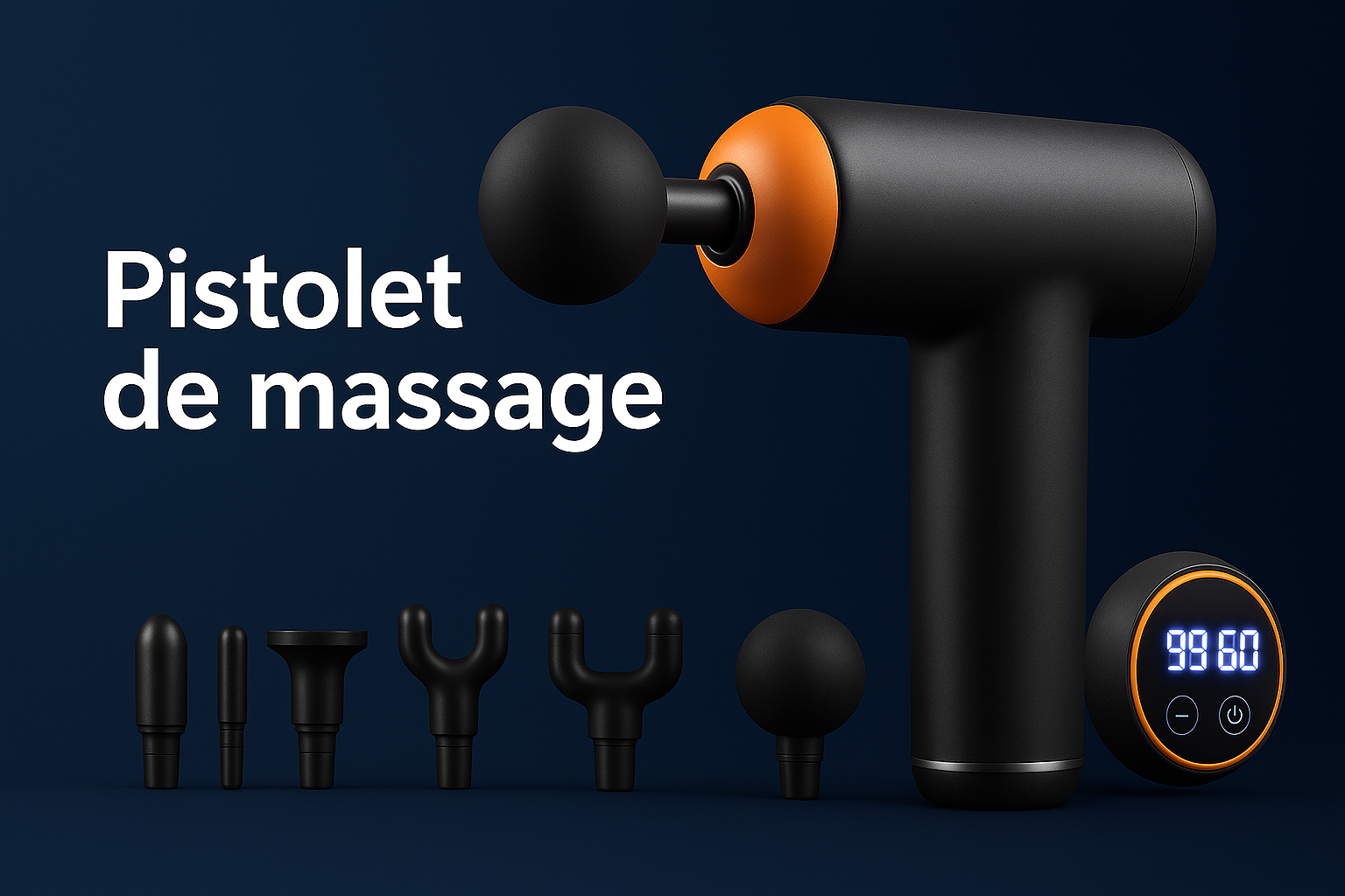 Pistolet de Massage Musculaire Professionnel avec 8 Têtes & 99 Vitesses