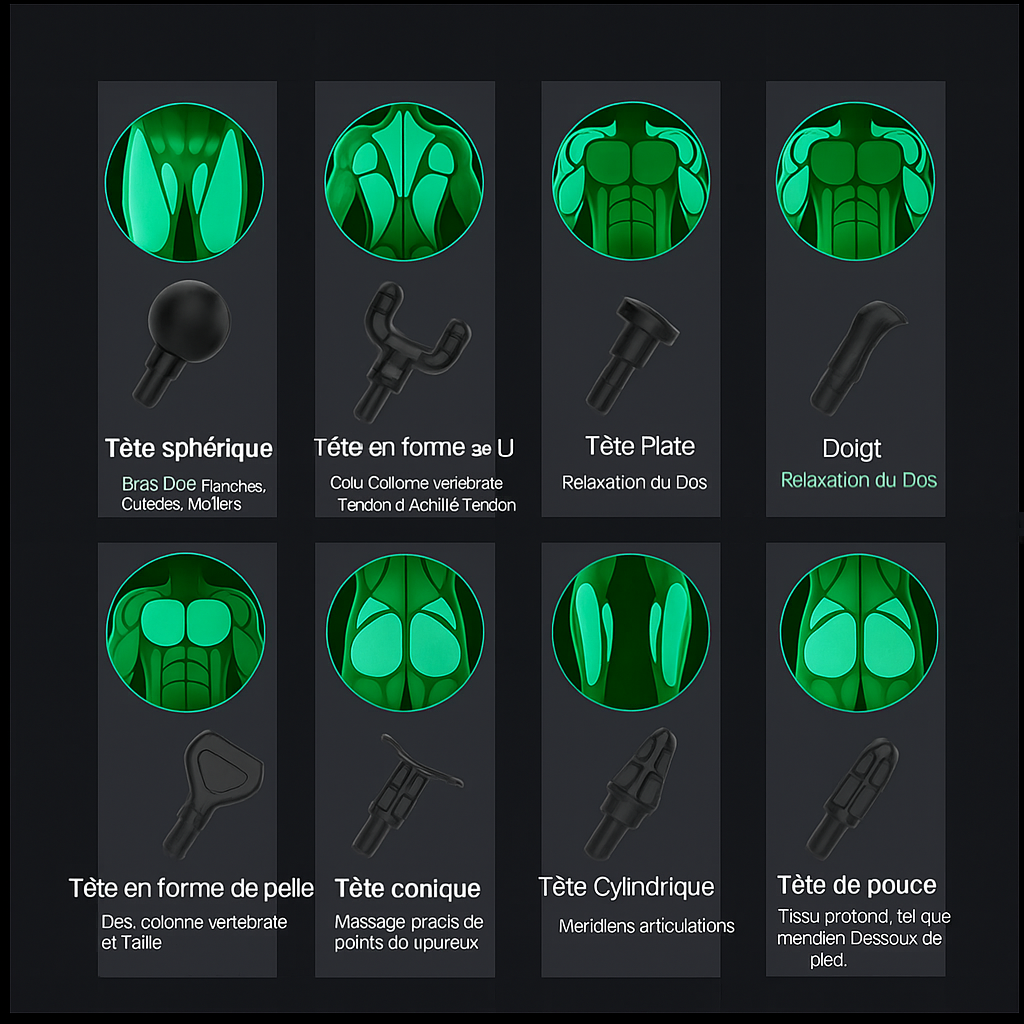 Pistolet de Massage Musculaire – Soulagement Profond avec 8 Têtes Interchangeables pour le Corps
