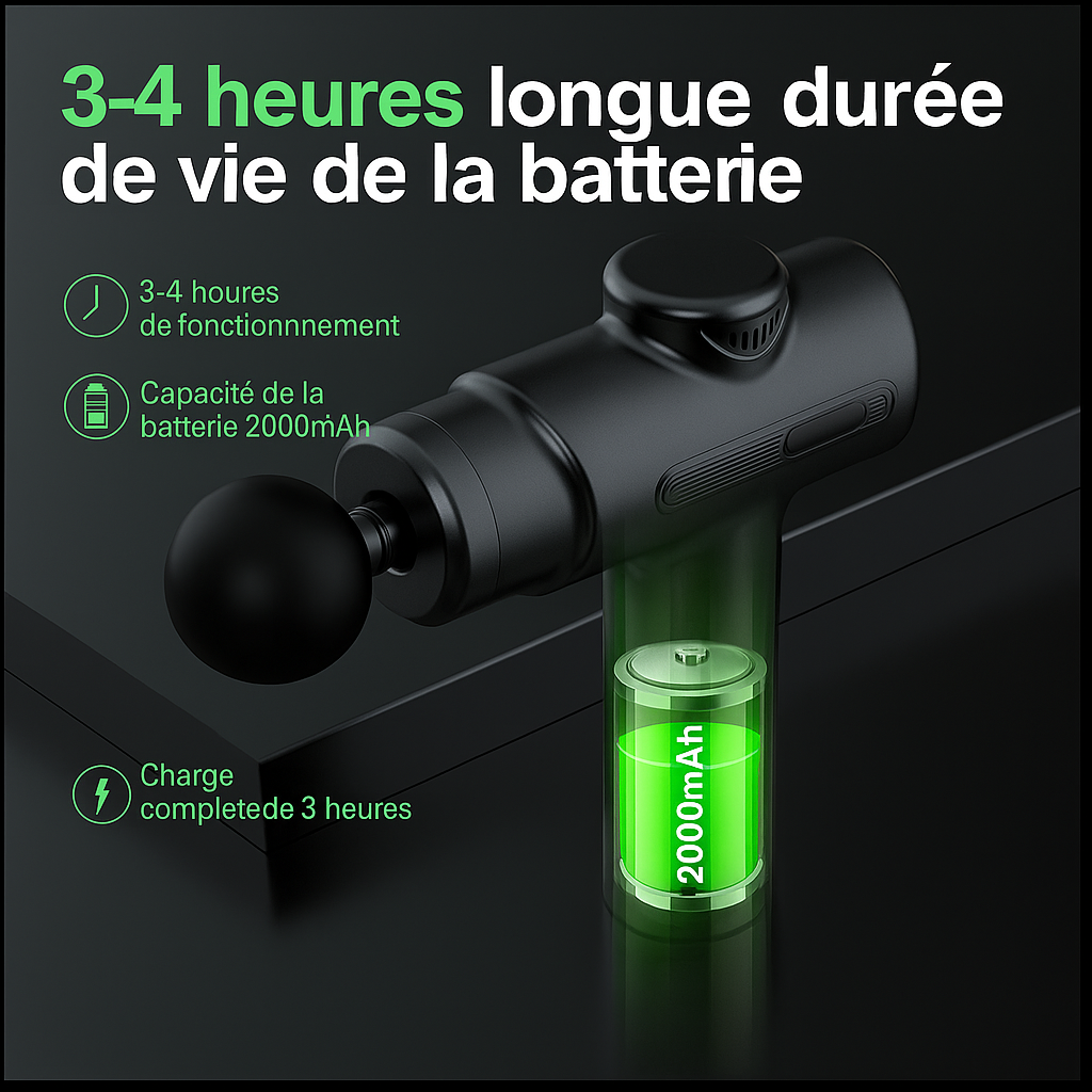 Structure en matériau composite : Ce pistolet de massage est fabriqué à partir de matériaux composites de haute qualité, durables et durables.