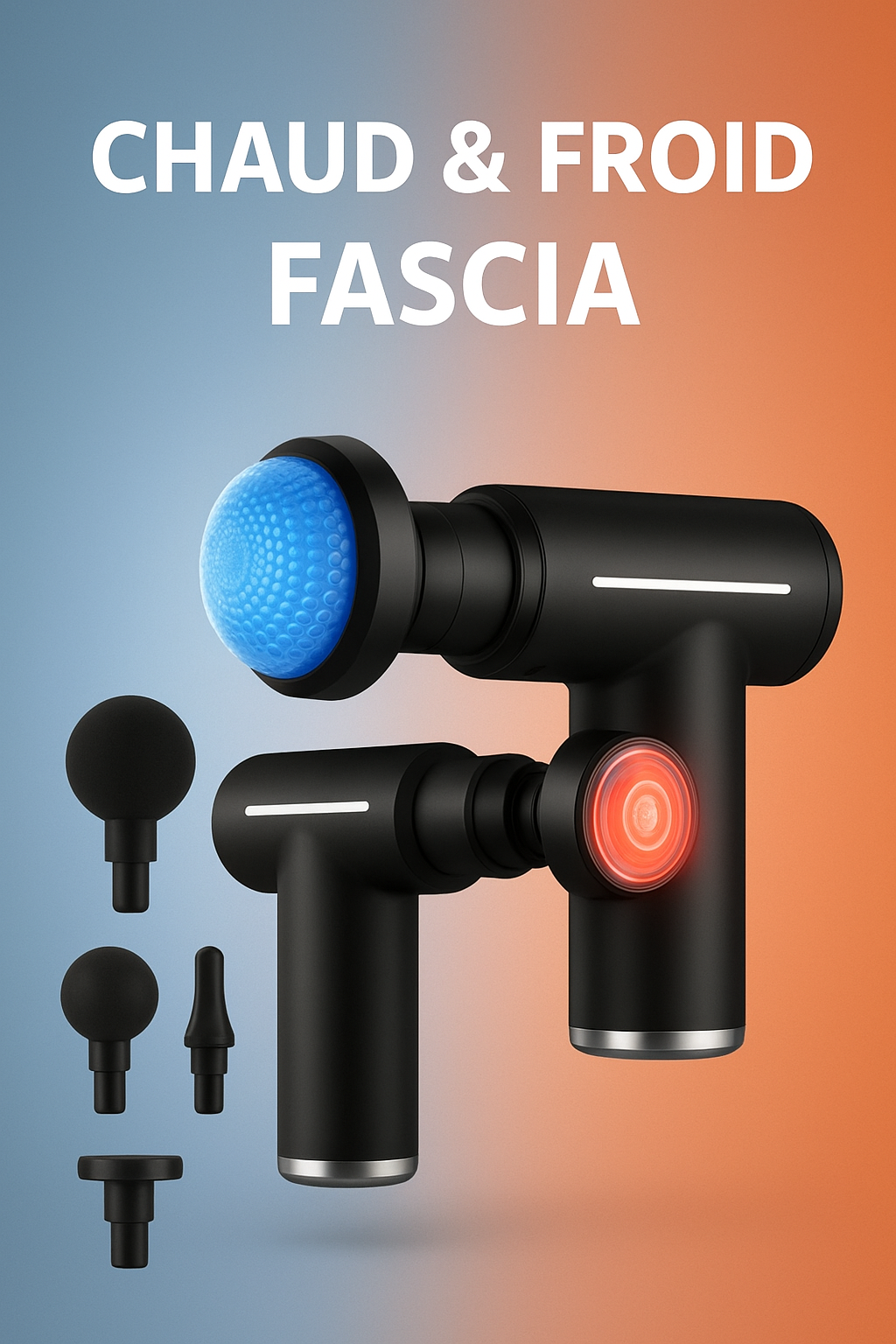 Pistolet de massage musculaire professionnel – Relaxation, récupération, 6 têtes, compresses chaud/froid